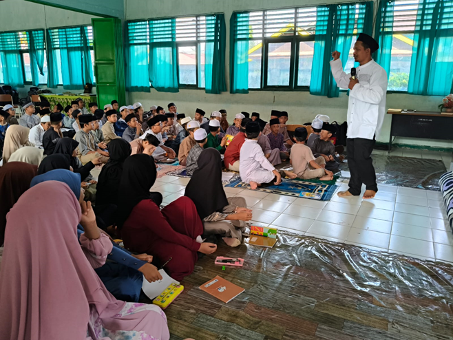 Peserta didik mengikuti pembelajaran interaktif dalam kelompok besar pada sesi materi keagamaan.